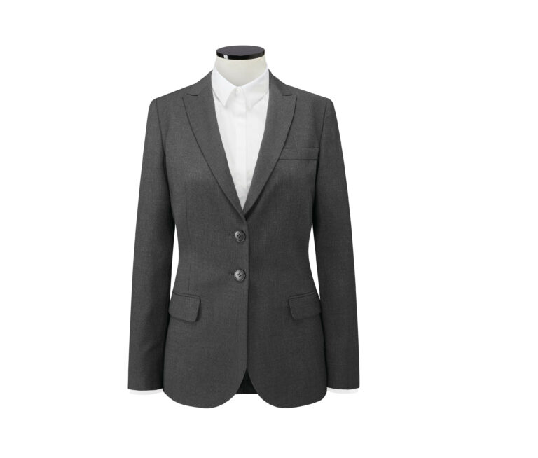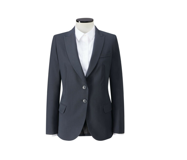 Veste de tailleur contemporaine. Doublée. Fermeture droite 2 boutons.
