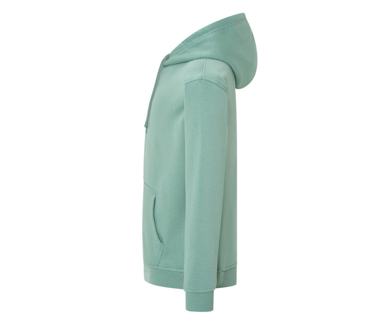 Sweat capuche unisexe. Cordon de serrage ton sur ton. Poche kangourou. Stock en conversion : polyester/coton vers coton/polyester recyclé. Intérieur gratté.